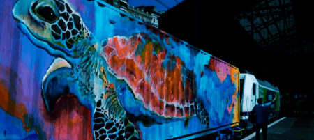 Secondo l’iniziativa, “il trasporto di merci su rotaia è l’unica possibilità per combinare la crescita economica con gli obiettivi climatici prefissati da istituzioni e governi. Trasportare merci tramite la rete ferroviaria, infatti, ridurrebbe di 12 volte i costi delle esternalità prodotte tramite il trasporto su strada. Ma non solo: i vagoni merce consumano 6 volte meno energia rispetto ai camion, performano 9 volte meglio in quanto ad emissioni di CO2, 8 volte meglio in termini di inquinamento atmosferico e sono causa di incidenti 85 volte in meno rispetto ai mezzi pesanti. Il treno è partito a dicembre 2019 e in un anno ha fatto tappa presso le principali capitali europee. In ogni città, due vagoni venivano trasformati in opere d’arte grazie all’intervento di alcuni street artist della scena locale.