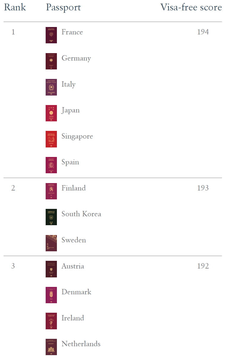 The Italian passport allows access to a whopping 194 destinations without a visa. The same applies to Germany, Spain, France, Singapore, and Japan. A strong correlation has been identified between the “power” of the travel document and the availability of investment migration programs