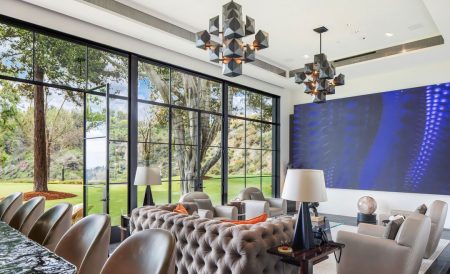 Adagiata sulle colline di Hollywood vista canyon, questa villa favolosa si estende per 1858 metri quadri, mentre l’intero appezzamento (abitazione, pertinenze e giardino) si allarga per quasi un ettaro e mezzo.