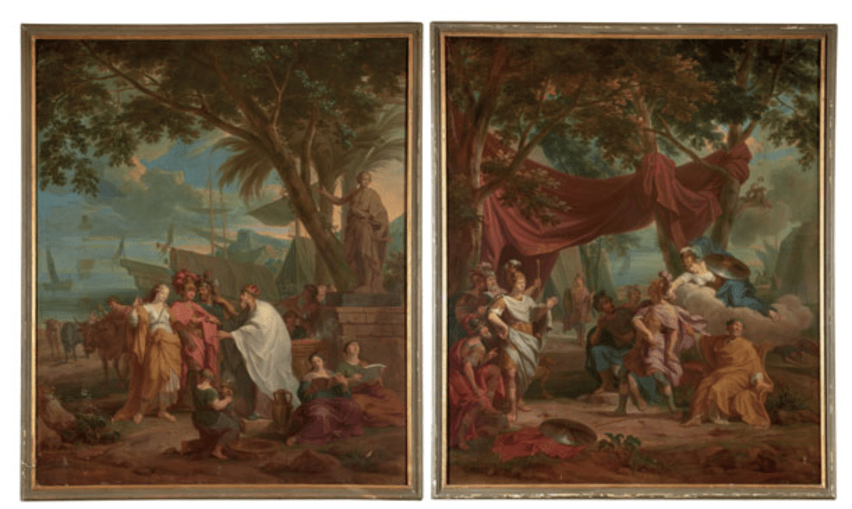 Coppia di grandi dipinti ad olio attribuiti a Claudio Francesco Beaumont. Courtesy: Artcurial