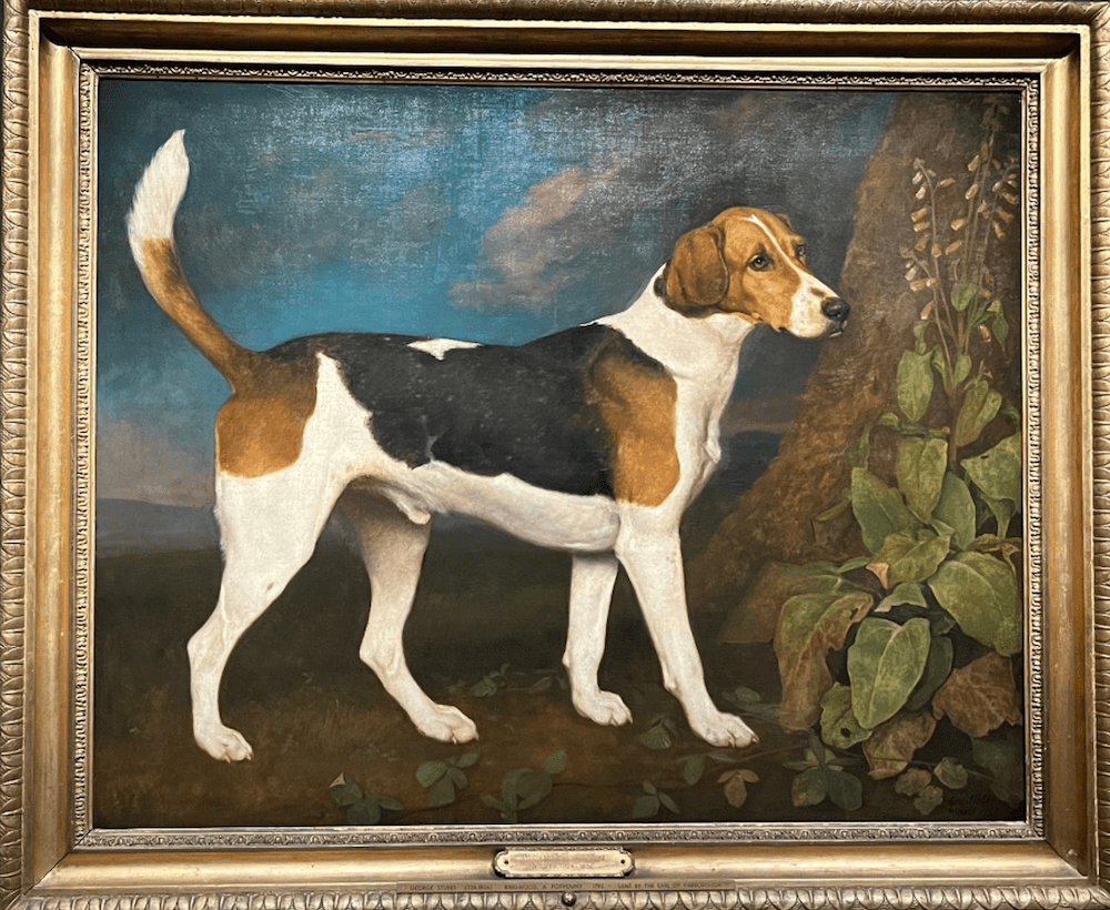 Il direttore della Wallace Collection, Xavier Bray, ha curato l’esposizione Portraits of Dogs: From Gainsborough to Hockney che ha appena aperto nello splendido museo londinese. Sede adattissima visto che per arrivare alle sale della mostra si attraversano i salotti che erano di Sir Richard Wallace, decorati con magnifiche scene di caccia di Jean-Baptiste Oudry e Alexandre-François Desportes. Ma l’affare diviene immediatamente tutto inglese, sin dalla prima sala dove tre splendidi dipinti di George Stubbs (1724-1806) emergono da una parete color vinaccia. Stubbs fu sicuramente l’artista che ha portato la ritrattistica degli animali al più alto livello qualitativo nel Settecento in Inghilterra. Studioso attento di anatomia – a partire da lezioni nell’ospedale di York in gioventù – è riuscito tanto a rappresentare con precisione i dettagli delle diverse razze quanto a dare personalità al cane rappresentato, illustrandone l’intelligenza, la fedeltà, la potenza. Questi cani sono ritratti in maniera grandiosa, su tele della stessa misura di quelle del tipico ritratto di aristocratico a mezza figura, solamente girate in orizzontale. Sono i compagni della grande aristocrazia inglese, e nel Settecento commissionarne il ritratto diviene una pratica diffusa: non sono più solo al lato dei loro padroni ma posano da soli.