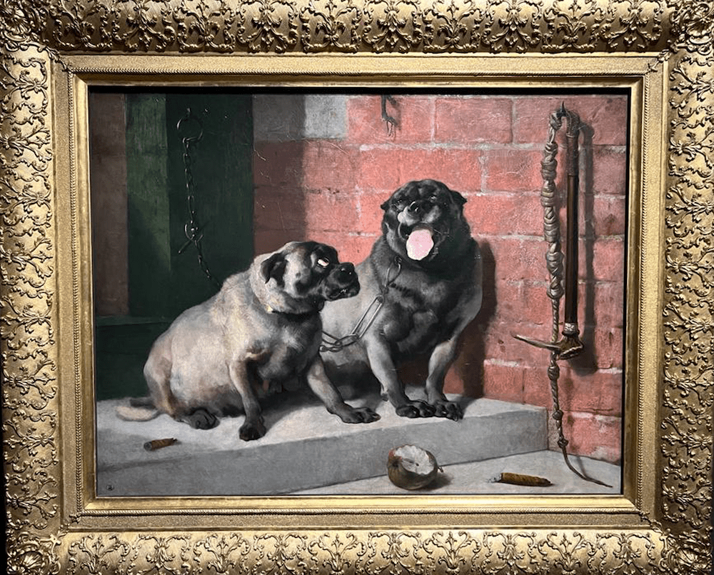 L’esposizione è stata in tutta probabilità istigata dal celebre dipinto Doubtful Crumbs, opera di Edwin Landseer e parte della Wallace Collection. Landseer lavorò molto sul rapporto uomo-cane e su come spesso si cerchi di conferire all’animale caratteristiche tipiche dell’essere umano. Con lui si diffondono i ritratti allegorici: superando la tradizione di Stubbs, i cani sono ritratti in contesti narrativi spesso moralizzanti. Nel caso di Doubtful Crumbs, per esempio, un mastino sereno con il suo grande osso è accanto ad un piccolo terrier affamato, chiara allusione alla parabola di Lazzaro e del ricco Epulone. Impressionante e sempre di Landseer è Uncle Tom, dove due carlini non sono altro che la rappresentazione di Tom e sua moglie quando sono venduti al mercato degli schiavi nel romanzo abolizionista di Harriet Beecher Stowe del 1852, La capanna dello zio Tom.