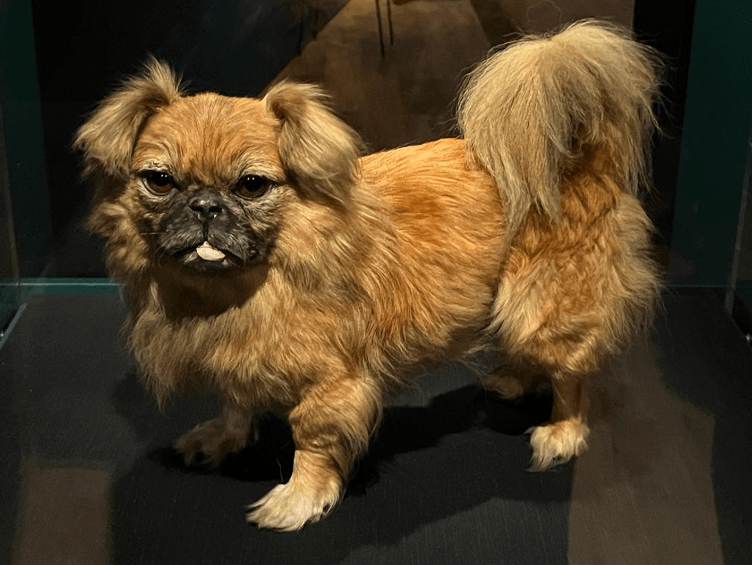 La passione per i cani in Gran Bretagna nell’Ottocento non aveva limiti, soprattutto per le razze piccole e rare, che erano ricercatissime. Ecco quindi Ah Cum, uno dei primi pechinesi arrivati su suolo britannico intorno al 1896, sottoposto alla sua morte a tassidermia, e oggi conservato al Natural History Museum.