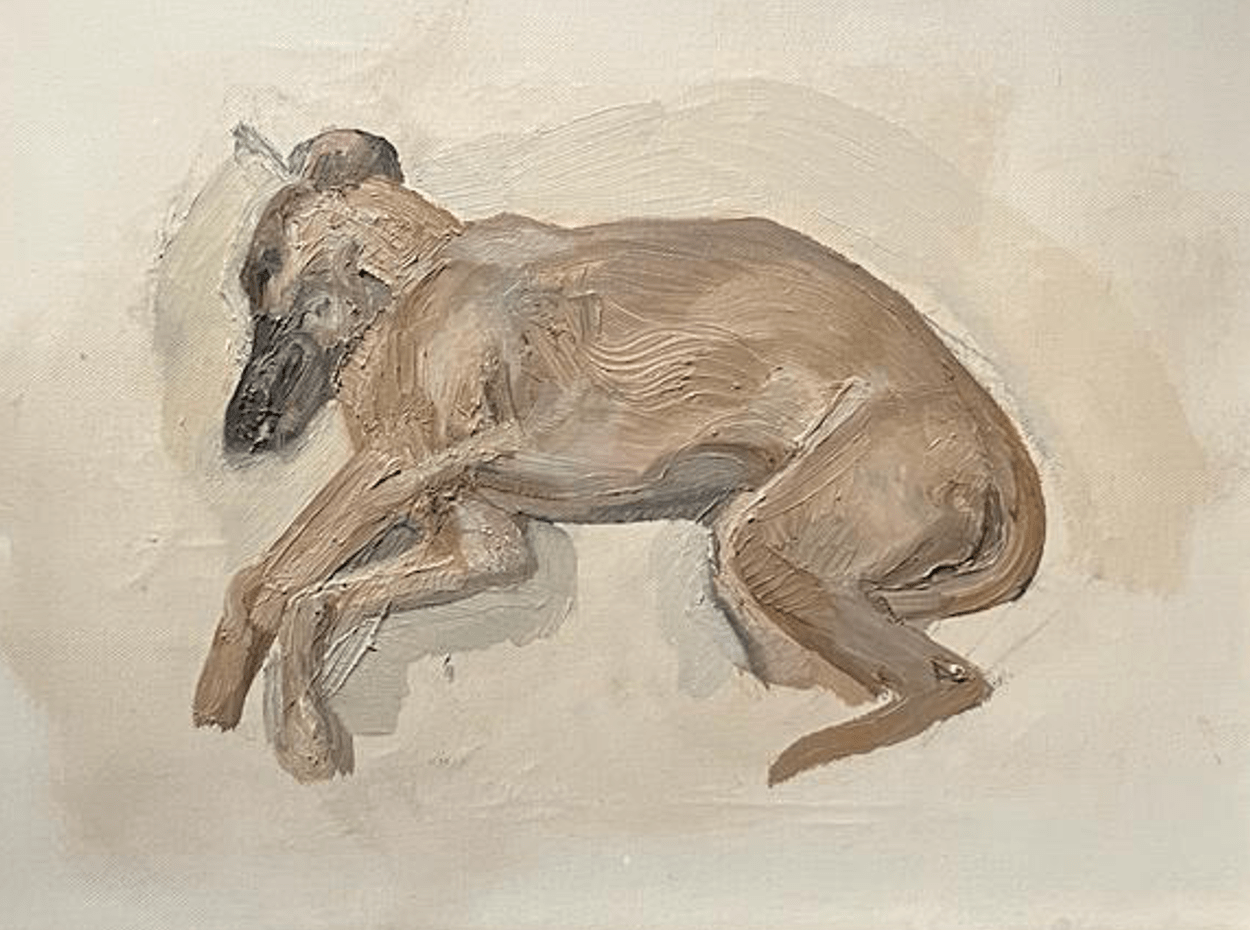 Concludono l’esposizione cani più moderni, ma sempre amatissimi. Primo fra tutti Pluto, il cane di Lucian Freud, presenza costante nello studio come racconta il suo assistente David Dawson nell’audioguida – che consiglio di prendere. Pluto e La tomba di Pluto, due prestiti eccellenti che testimoniano l’affetto e il senso di enorme solitudine che la morte dell’adorato whippet – o piccolo levriero – ha portato. L’assenza di arroganza, il pragmatismo, l’impazienza quasi avida, tutti caratteri che il pittore vedeva negli animali, una naturalezza e spontaneità che avrebbe voluto dai suoi modelli umani.