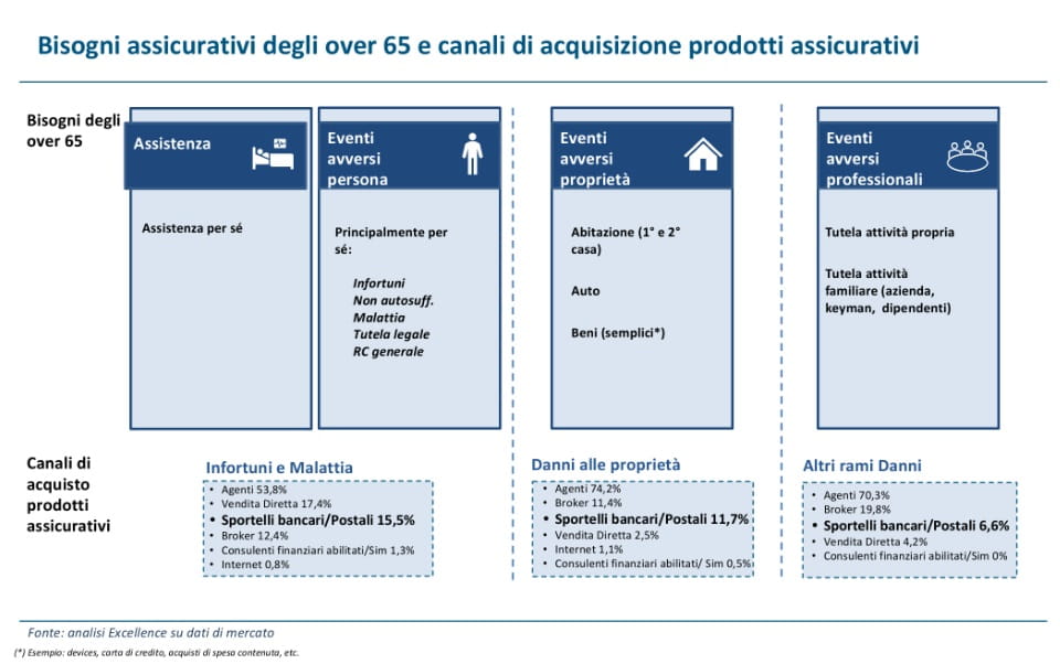 Da diverso tempo ormai il canale bancario è diventato anche uno punto di collegamento fra i bisogni assicurativi del cliente e le relative soluzioni disponibili. Tuttavia, ha rilevato Excellence nella sua ricerca, molto spesso gli over 65 italiani non sono nemmeno a conoscenza delle opzioni che la banca e il suo consulente potrebbero offrire loro.