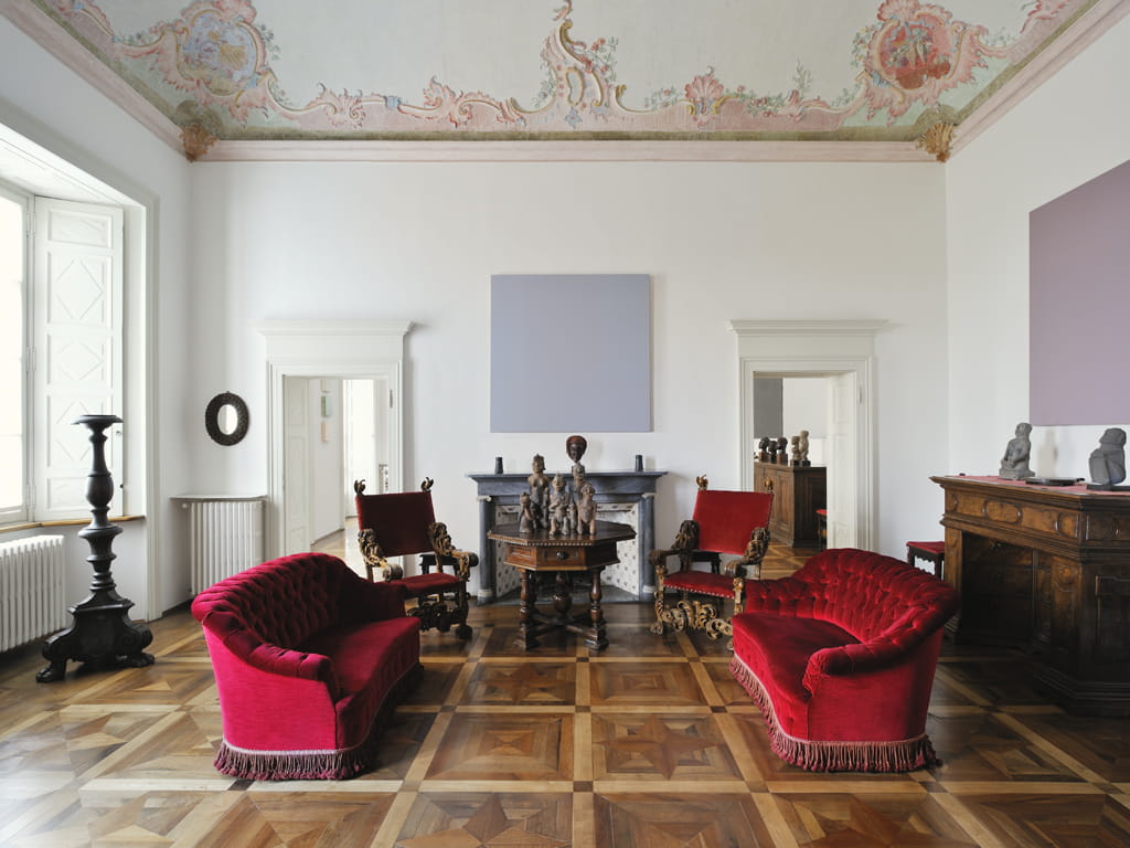 FAI Fondo per l’Ambiente Italiano, Villa e Collezione Panza Varese. Villa, primo piano, salotto. Opere di Ruth Ann Fredenthal e arte primitiva africana e messicana. Photo Alessandro Zambianchi, Milano