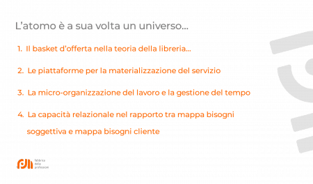E? il micro-cosmo che, al centro tra domanda e offerta, deve posizionarsi sia all’interno di una strategia aziendale che dentro l’universo del cliente, in virtu? di tre aree di competenze indispensabili per un nuovo tipo di consulenza: