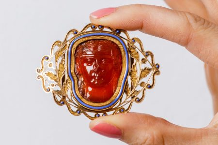 Squisito esempio della gioielleria francese di inizio XIX secolo, i gioielli risalgono al 1808 e sono rimasti custoditi nel segreto di una collezione privata del Regno Unito per oltre un secolo e mezzo. Di gusto interamente neoclassico, riflettono lo stile che fu fiorente sotto il regime di Napoleone, desideroso di legittimare la sua tirannia con riferimenti alla classicità imperiale romana. Un desiderio che trovava pieno riscontro nell’abbigliamento e negli ornamenti della sua Joséphine.