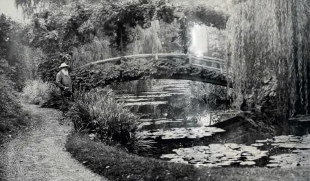 Il maestro di fianco al ponte giapponese sul suo stagno dell’amata dimora di Giverny