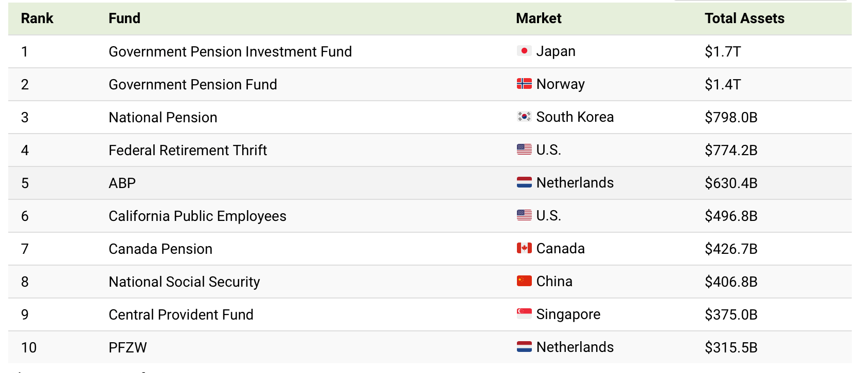 Fondi pensione, ecco i più grandi al mondo
