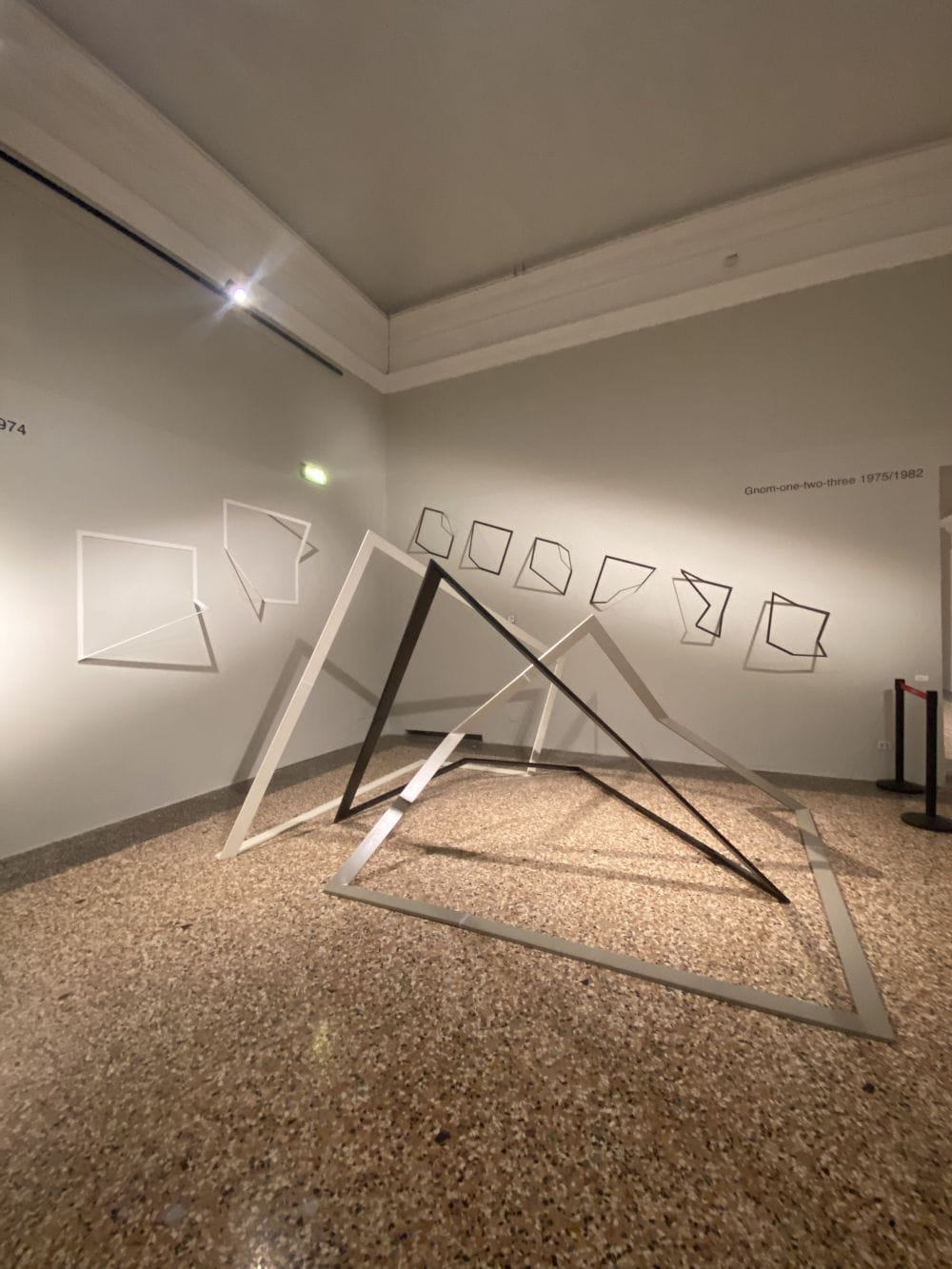 In mostra sono presenti anche i lavori degli anni Settanta come le Extrapagine (1973-1986), Spazio potenziale (1974-1976), Meridiana (1974) e Gnomoni (1975-1982), dove l’artista riscopre un crescente interesse nei confronti dell’anomalia, dell’imprevisto che si oppone alla programmazione e spontaneamente procede verso l’esperienza della tridimensionalità.
