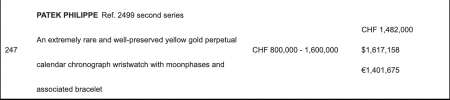 Il Patek Philippe ref. 2499 in oro giallo. Era un lotto molto atteso, ma non è riuscito ad entrare nelle prime tre posizioni