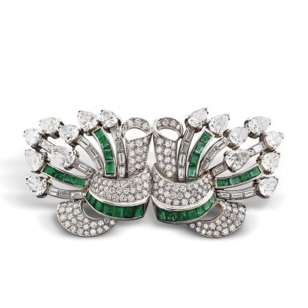 Diamanti e smeraldi, in questo caso colombiani, anche nella coppia ci clips in platino (35.000 euro).