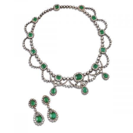 Poi, c’è stato il record storico del Cartier Crash, di cui abbiamo diffusamente parlato qui. Ma in entrambe le giornate – è il caso di dirlo – hanno brillato i gioielli, con aggiudicazioni pari a diverse decine di migliaia di euro. Il top lot della vendita è stata una demi paure composta da una collana con smeraldi circondati da diamanti taglio vecchio a formare un motivo a ghirlanda, accompagnata da un paio di orecchini pendenti in oro e argento con smeraldi e diamanti (175.000 euro).