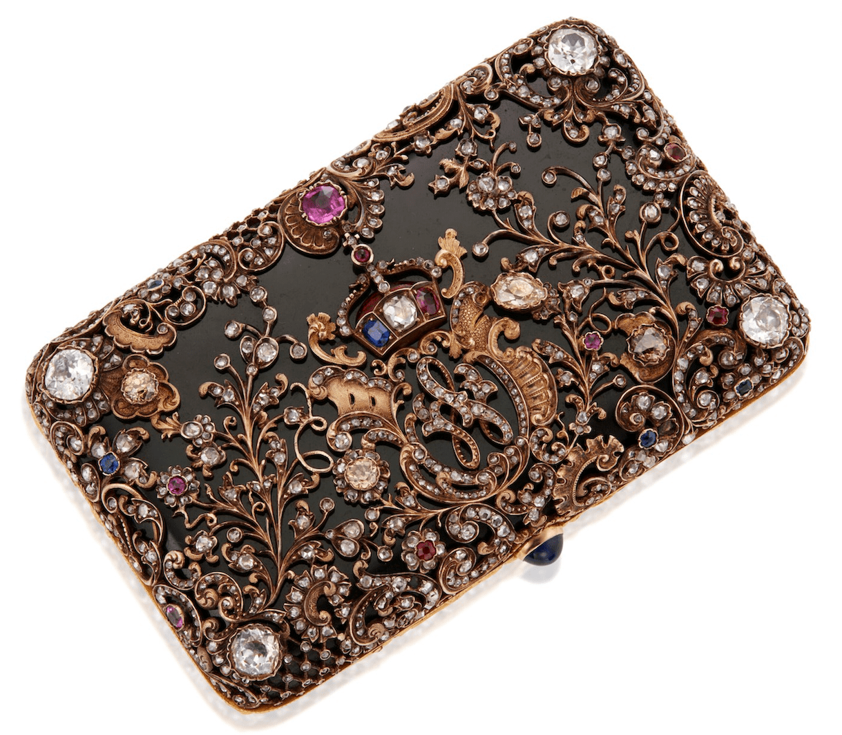 Vanity case in giada, oro, diamanti e pietre, $50,000. Courtesy: Christie’s.