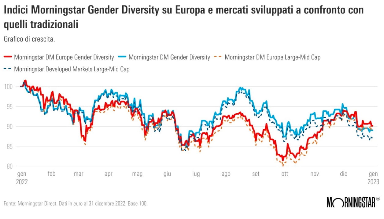 L’indice Morningstar developed europe gender diversity ha battuto quello tradizionale di 2,49 punti percentuali nel 2022