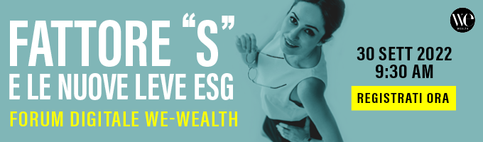 Registrati subito al forum digitale di We Wealth “Il Fattore S e le nuove leve dell’universo Esg”, che si terrà venerdì 30 settembre alle 9:30