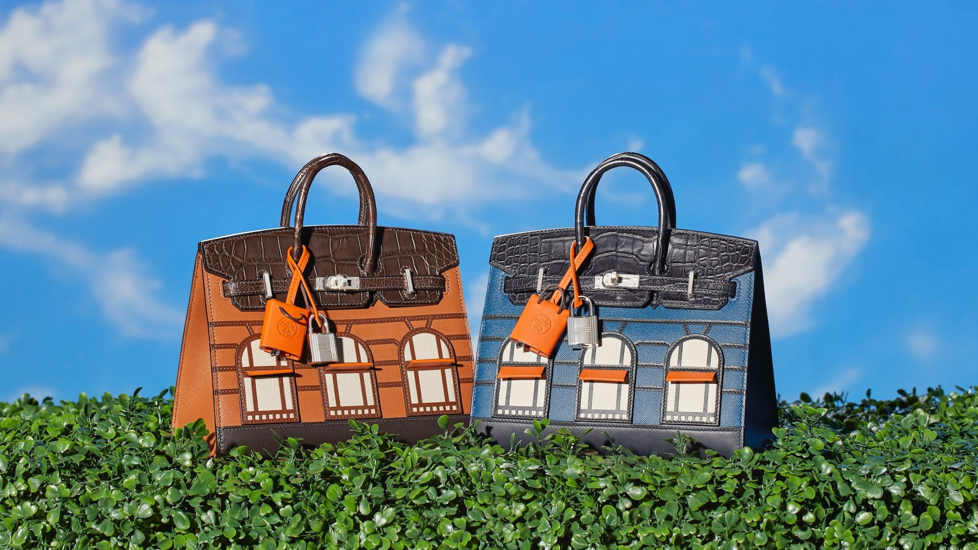A rare, matte ébène alligator, gold madam, orange h swift, brulee & ébène sombrero, craie epsom leather Faubourg sellier Birkin 20 with palladium hardware, Hermès, 2020 and A rare, matte bleu marine alligator, deep bleu madam, orange h swift, bleu indigo & bleu obscure sombrero, craie epsom leather Faubourg sellier Birkin 20 with palladium hardware, Hermès, 2020. Courtesy: Christie’s.