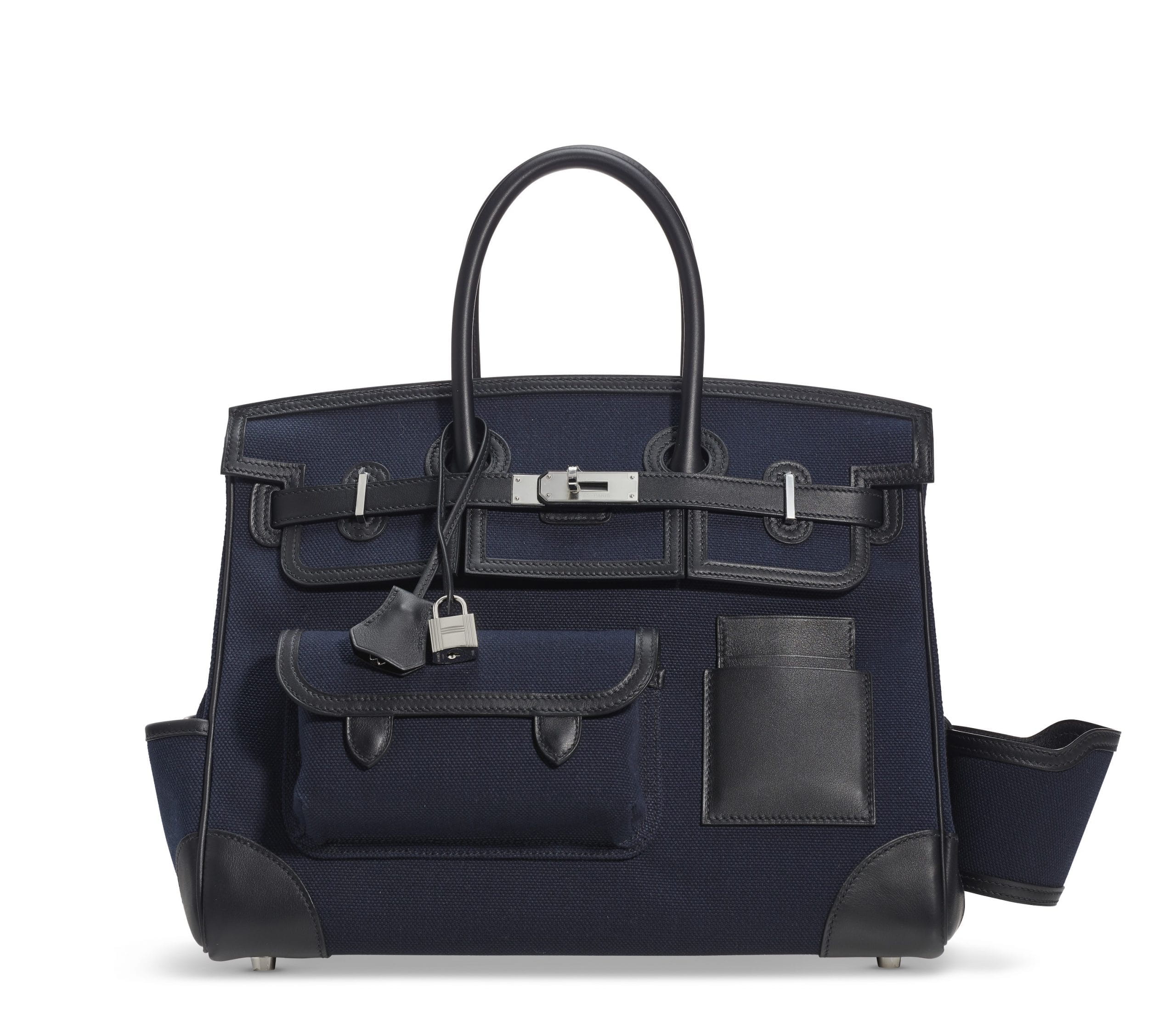 A limited edition bleu marine canvas & swift leather Cargo Birkin 35 with palladium hardware, Hermès, 2020. Courtesy: Christie’s.