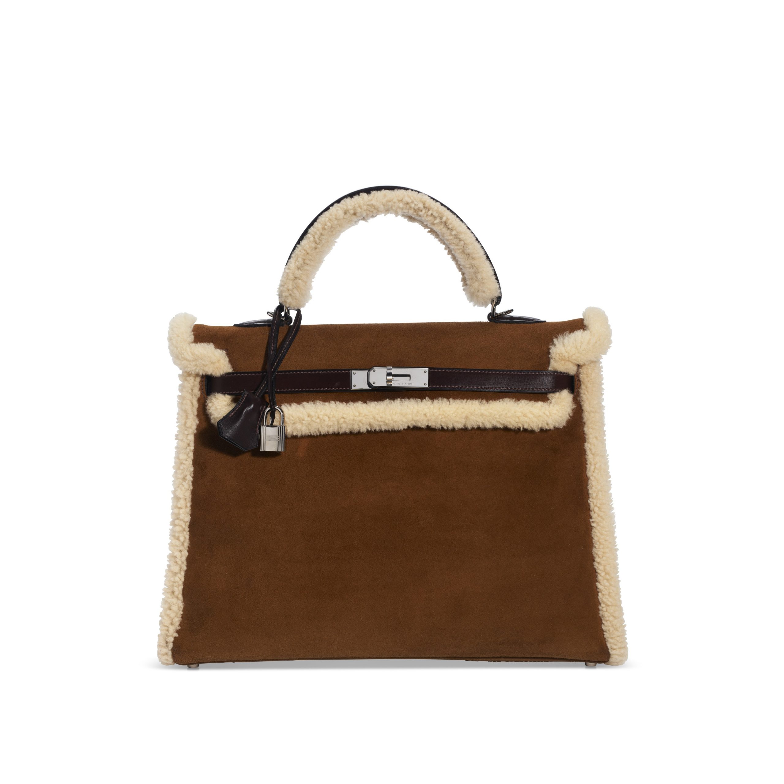 A rare, ébène barénia, gold veau doblis $ shearling retourné Teddy Kelly 35 with palladium hardware, Hermès, 2006. Courtesy: Christie’s.