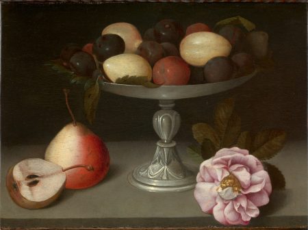 Fede Galizia, Alzata con prugne pere e una rosa, collezione privata, Bassano del Grappa
