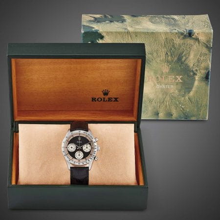 Il catalogo presentava altri Cartier, fra cui anche ma anche un orologio da tasca in oro e platino, piccoli zaffiri e diamanti, smalto bianco e blu 20.000 euro. Importante la presenza di Rolex. Presenti in asta anche il Daytona Paul Newman ref. 6239 (1968) in acciaio, con cinturino in pelle competizione a 130.176. Un Submarine ref. 6536 del 1955 in acciaio con bracciale oyster e quadrante nero con scritta rossa “no unit” ha incassato 43.750 euro; un Rolex Explorer Freccione ref. 1655 del 1976 in acciaio con bracciale oyster, quadrante nero a indici bianchi è passato di mano per 20.000 euro.