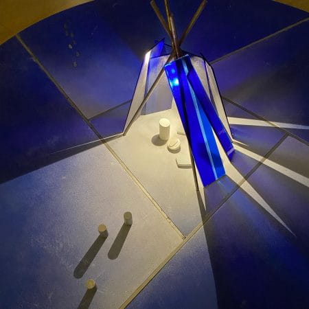 All’esterno, accoglie il visitatore un presepe multicolore luminoso di Marco Lodola, una dimensione pop dell’iconografia cristiana