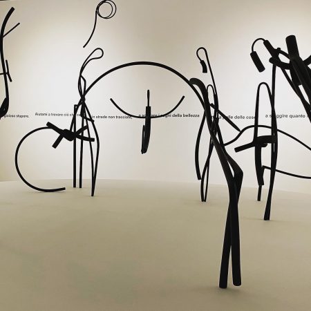 «Ogni sala è un nucleo a sé che si rivela come un tesoro», spiega la curatrice. Tesoro come quello delle opere di Fausto Melotti (1901-1986) e Michelangelo Pistoletto (1933), racchiuse in un unico ambiente, quasi uno scrigno. Le sculture di Melotti, del 1972, richiamano nella loro tipica rarefazione e musicalità sia l’albero di Natale che il presepe.