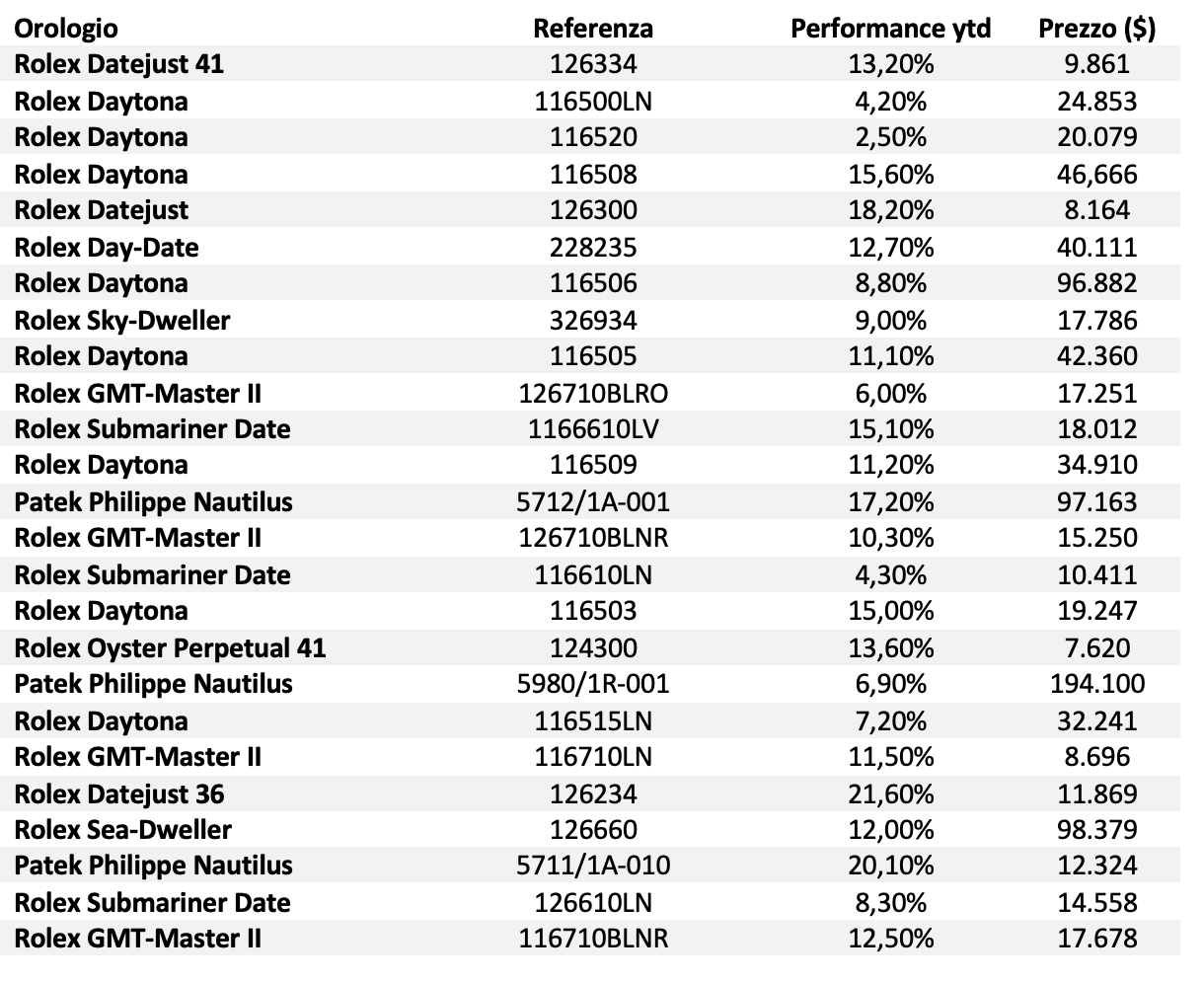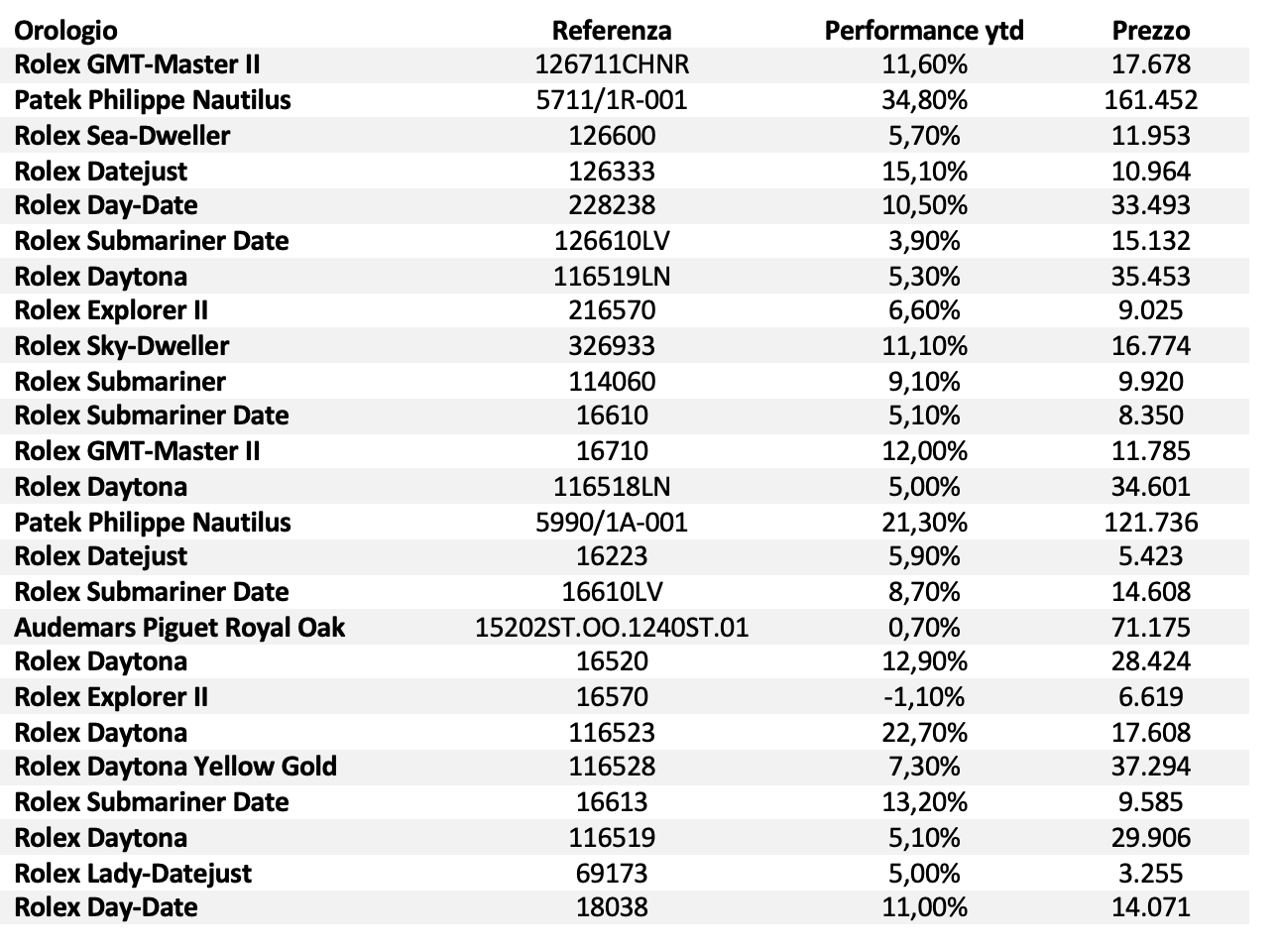 Nella tempesta dei mercati azionari gli orologi di lusso si sono rivelati essere un porto sicuro. Ecco l’apprezzamento degli orologi più scambiati sul mercato nell’ultimo anno