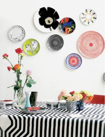 Le piatterie tradizionali erano organizzate in modo molto regolare, spesso con i piatti di portata al centro e i più piccoli ai lati. Oggi si tende invece a creare delle composizioni molto irregolari, sia nella disposizione che nella forma dei piatti stessi, combinati per colore e grandezza. Si possono trovare infatti insiemi di piatti a tinta unita, accordati per la ricchezza cromatica delle loro nuances, oppure tutti bianchi su un muro colorato. Ci sono veramente molte possibilità originali, in grado di dare alla stanza un senso di allegra presenza, perché tale è la ceramica.
