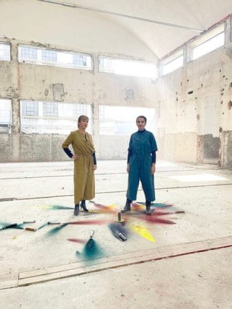 Goldschmied & Chiari presentano Portali e Magnifica, due opere inedite che aprono il percorso espositivo. Le artiste le hanno create nel 2022, dopo il lungo isolamento: «Il sogno, la visione, l’inconscio sono stati gli strumenti attraverso i quali abbiamo navigato nei primi mesi di chiusura e immobilità corporea», sottolinea il duo. Le due opere celebrano la femminilità multiforme, ibrida e mostruosa. I Portali sono specchi di grande formato sui quali sono fissati scatti fotografici speculari. Le foto ritraggono combinazioni di fumogeni colorati fatti divampare dalle artiste all’interno del loro studio.