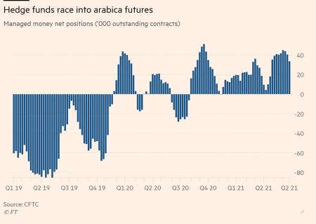 Secondo Roberto Velez, ceo della Federazione dei coltivatori di caffè colombiani, occorreranno due mesi perché le cose si sistemino. Intanto, gli edge fund continuano ad accumulare posizioni a termine sul caffè, scommettendo su un aumento dei prezzi. Anche se molti sostengono che la domanda della bevanda alla caffeina non tornerà ai livelli pre-pandemia per ancora molto tempo. Chi avrà ragione?