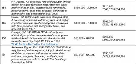 Sopra al milione di dollari anche il quarto classificato, l’ormai onnipresente Richard Mille, passato di mano per 1,18 milioni.
