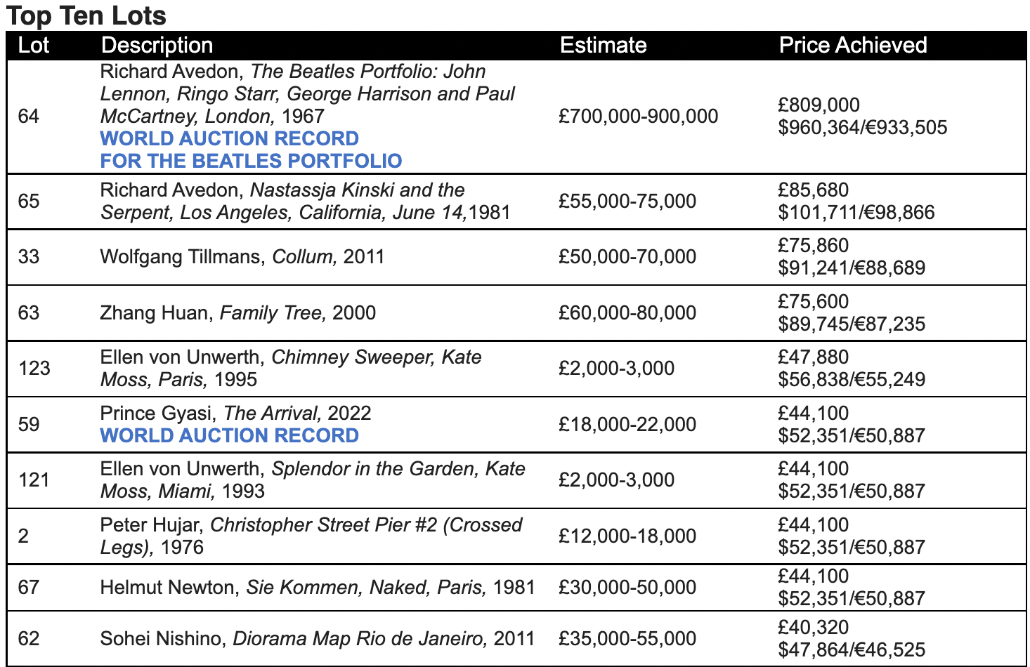 Oltre 300 i partecipanti provenienti da 36 Paesi conferma l’appetito globale dei collezionisti per le fotografie di alta qualità. “Non vediamo l’ora di continuare questo slancio nella nostra stagione primavera 2023 a New York e Londra”, hanno concluso in conferenza stampa Yuka Yamaji e Rachel Peart.