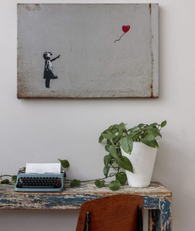 L’altra opera-simbolo di Banksy in asta è una versione della ragazza con palloncino, “Girl with Balloon” del 2006 (stima 2-3milioni di sterline). Vi è poi “Vandalised Oils (Choppers)” del 2005 (stima 2,5-3,5 milioni di sterline). L’ex cantante dei Take That le aveva acquistate tutte e tre direttamente dallo studio di Banksy, subito dopo la loro creazione. Dichiara lo stesso Williams via Sotheby’s: «Ricordo ancora quando ho visto per la prima volta “Girl with Balloon”, “Vandalised Oils (Choppers)” e “Kissing Coppers”. Credo che siano tra i suoi migliori dipinti, strettamente legati ai pezzi che ha realizzato per strada. Collezionare il lavoro di Banksy significa diventare parte di un movimento culturale più ampio». Il cantante dice che l’arte di Banksy è «iconica, d’impatto e mi fa ridere».