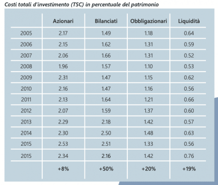 Sono proprio queste ultime voci a far aumentare il costo totale dell’investimento, spesso poco chiaro al sottoscrittore, che perciò avrà guadagni inferiori a quelli stimati: il TSC, ovvero il costo complessivo dei Fondi, è sempre stato in costante crescita, come dimostra la tabella allegata.