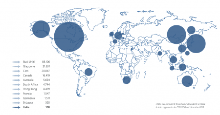 Il numero dei Consulenti Finanziari Indipendenti nel mondo cresce in modo costante ogni anno, segno dell’evidente soddisfazione del mercato che continua a farne richiesta: da una recente analisi dei mercati dei Paesi finanziariamente più evoluti, è emerso, infatti, che la consulenza finanziaria indipendente, remunerata solo a parcella, rappresenta il punto di riferimento per le scelte finanziarie di milioni di investitori.