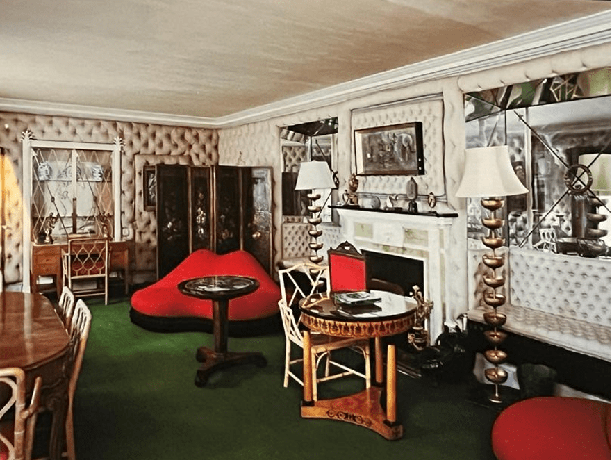 Un frammento di moquette ideata dallo stesso James e che riproduce le impronte di sua moglie, la ballerina Tilly Losch, dà l’idea del totale surrealismo della casa.