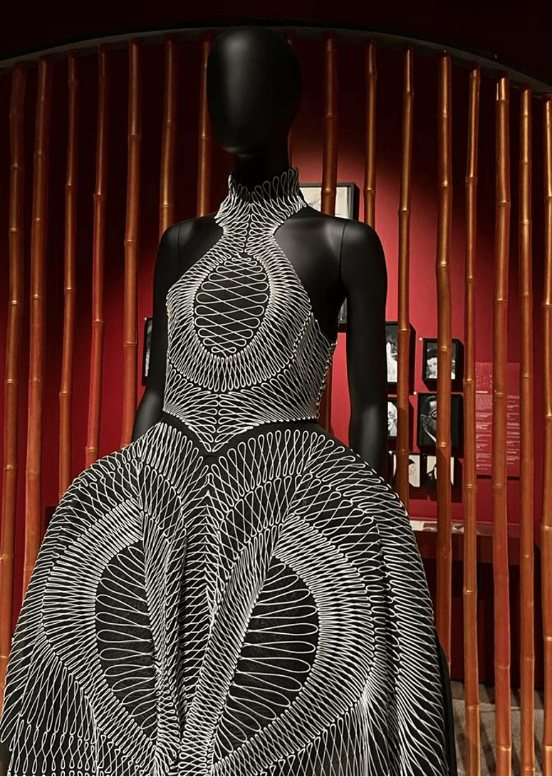 A dimostrazione della forte eredità dell’estetica portata avanti dalle collaborazioni dei surrealisti con la moda, viene esposto un abito recente di Iris van Herpen, che con sapienza mescola arte, scienza e la moda stessa per creare corpi in un eterno e onirico movimento.